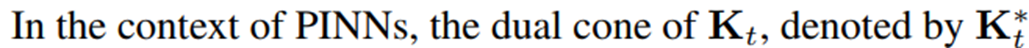 \(\mathbf{K}\) 는 PDE 잔차 손실 기울기와 경계 손실 기울기로 구성되어 있고, \(\mathbf{K^*}\) 는 PDE 잔차 손실과 경계 손실 기울기 모두와 내적이 0 이상인 벡터들의 집합이다.