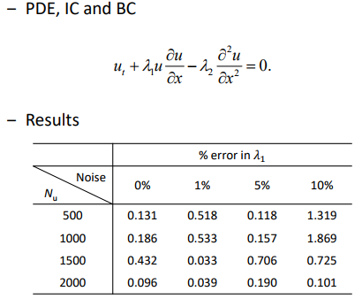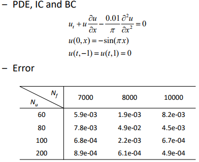 \[\mathcal{L}(\theta) = \frac{1}{N_1} \sum^{N_1}_{i=1}|\hat{u}(x_{IB}^{(i)},t^{(i)}_{IB})-u^{(i)}|^2 + \frac{1}{N_2}\sum^{N_2}_{i=1}|f(\hat{u}(x_c^{(i)}, t_c^{(i)}))|^2\]