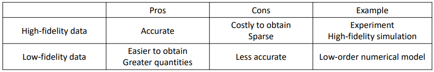 High-fidelity training data는 적은 양이지만 실제 값을 잘 추정한다.