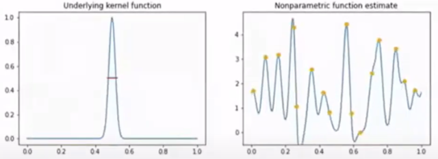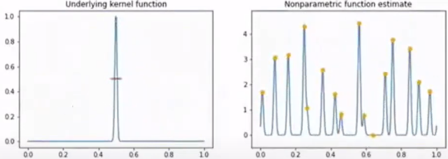 어떤것을 커널 function으로 고르냐도 중요하고 표준편차도 중요하다. (kernel의 width는 표준편차 \(\sigma\) 에 의해 결정된다.)