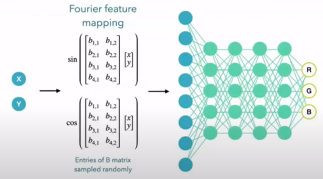 spectral bias를 input(x, y 좌표)값에 Fourier feature mapping을 하여서 해결할 것임.
